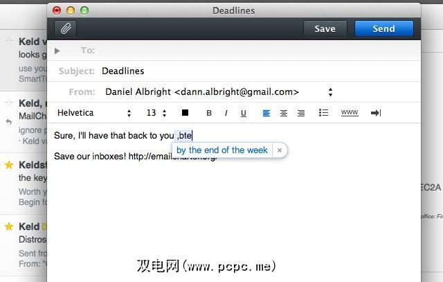 考虑一下您定期重复输入多少个内容;您的电子邮件地址就是一个很好的例子。我不了解您,但是每天至少输入三到四次“让我知道您的想法"。文本扩展允许我键入几个字母而不是整个短语。