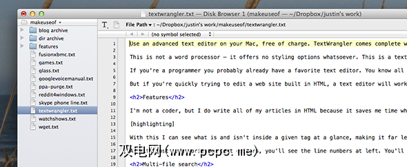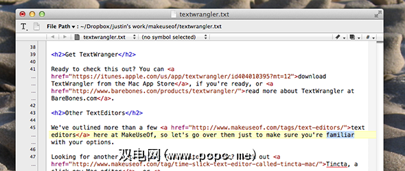这不是文字处理器-它不提供任何样式选项。这是一个自由文本编辑器,这意味着它仅处理纯文本。但是TextEdit却不是。 Text Wrangler提供了许多高级选项,其中许多选项对于那些需要偶尔编辑代码的人很有用。