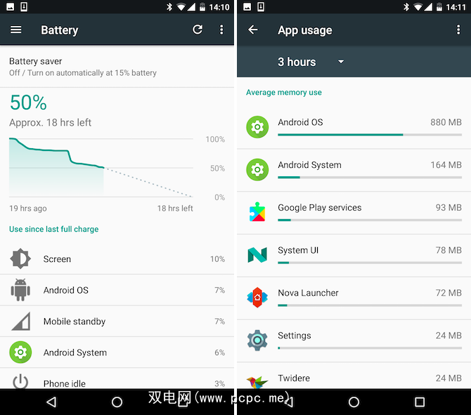 Android提供了可帮助您识别大量资源应用程序的工具。电池电量图表显示哪些电池消耗的电量最多,某些版本的Android可以让您查看哪些应用程序占用了RAM。