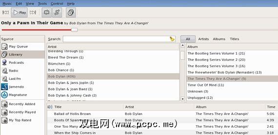 Rhythmbox选项卡列表(在最左侧)允许您查看播放队列,库,播客,广播首选项和Last.fm流。因此,您获得的不仅仅是广播流媒体。人们抱怨Linux上的播放器选项太差了!