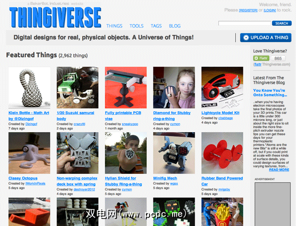 到目前为止,最全面的3D模型目录是Thingiverse,这是一个由社区驱动的网站,由MakerBot工业。所有对象都可以免费下载,其中许多可以用于生成派生对象。