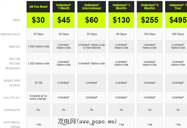 AirVoice在月付和数据费用方面居于首位。对于付费计划,它们具有AT&T网络上所有MVNO中最低的数据成本。