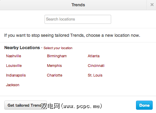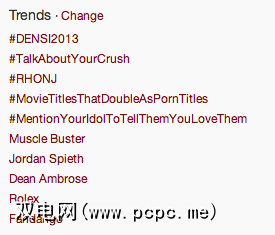 请注意,当前趋势是通过“量身定制的趋势"发出的,该趋势基于您的兴趣和周围环境。您可以通过点击屏幕上列表附近的“更改" 来更改它们。