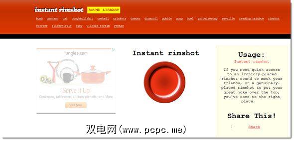 这是从一开始就提供单一服务的网站的最早示例之一。但是您仍然需要它来修饰您打算讲的好笑话。 Instant Rimshot遵循以下定义(“ rimshot"是指通过用鼓棒同时敲打鼓的边缘和鼓的头部而产生的声音),并且可以从声音库中进行回放。