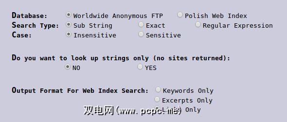 ,您还可以选择区分大小写还是区分大小写。另一个可用的选项是能够搜索字符串,而不是文件或网站的路径。换句话说,如果启用此选项,它将返回Archie找到的文件名,而不是找到文件的实际位置,以便您下载它。我不确定该功能为什么会非常有用,但是我确定添加了它是有原因的。甚至还有三个选项用于输出搜索结果,包括仅关键字,仅摘录和仅链接。