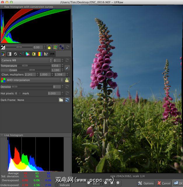 如果Raw Photo Processor适用于您以数学精度进行处理的人,带有UFRaw的OS X上的GIMP更加适合希望移动滑块并尝试UI的用户。能够将您的图像直接放入GIMP并进行裁剪,拉直和导出的过程是一个不错的附加功能-这是因为有些人只是看着GIMP界面而感到头疼。