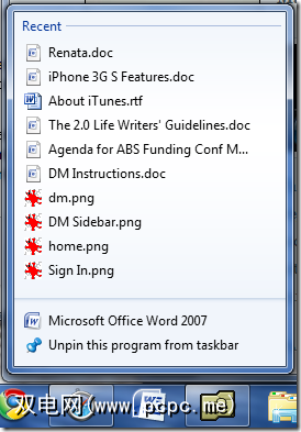 右键单击像Microsoft这样的图标Word或Windows资源管理器会显示最近的项目列表,单击即可轻松打开。应用程序在需要引起您的注意时会闪烁,而不是Vista中曾经出现的烦人的闪烁。