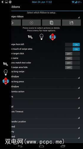 AOKP的功能区是可以在各种战略位置弹出的按钮行。您可以在锁定屏幕上或在设置下拉菜单上,或者如上图所示,从屏幕的右边缘或左边缘滑动时,都有一个功能区。像这样使用时,色带让人联想到SwipePad,但功能却不那么强大。以下是一个视频,更全面地介绍了该功能: