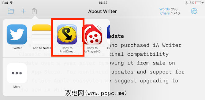 要使用PrintDirect进行打印,请打开文档,网页或其他文件,然后转到共享>打开方式>复印。到PrintDirect 。这会将文件发送到应用程序,您可以先在其中调整打印设置。