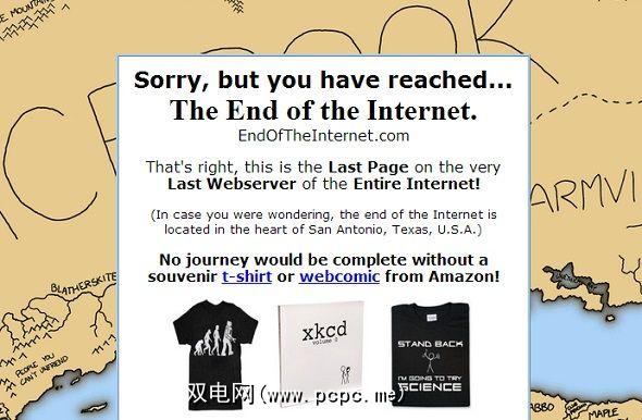Internet的末端是xkcd所拥有或与之关联,xkcd是许多出色的工具之一专为极客而设计的网络漫画。不过,由于xkcd确实很棒,我们不会反对他们。该网站告诉我们Internet的最后一页位于何处……显然是德克萨斯州的圣安东尼奥市。