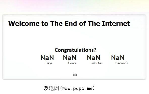 互联网的终结使人们看到了一个相当奇怪的转折,在“ 恭喜"一词上添加了问号,使您可以思考自己的生活选择。这点。还有一种说法是Internet的末尾没有附加任何数值,首字母缩写NaN在页面上出现了多次。