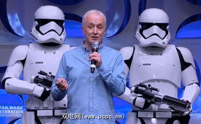 R2-D2和BB-8的外观都强调了这一点,后者是原力觉醒中非常健谈的新机器人。他们与电影的“机器人机械师"李·塔西(Lee Towersey)和奥利弗·斯蒂夫斯(Oliver Steeples)一同陪伴。有趣的是,凯西·肯尼迪(Kathy Kennedy)分享了他们聘用的故事:他们为先前在德国举行的《星球大战》庆典之一制作了R2-D2,她印象深刻,以至于她为卢卡斯影业提供了工作。证明梦想成真。