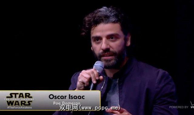 在塔西和史蒂夫斯离开舞台后,一些熟悉的面孔露面了:奥斯卡·艾萨克(Oscar Isaac,饰演Poe Dameron),