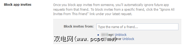 从此处,您可以阻止应用程序邀请以及其他一些操作。幸运的是,这些操作很容易撤消(到目前为止)。屏蔽某人或某物后,您会在该人或应用程序名称的旁边找到“取消屏蔽"链接。