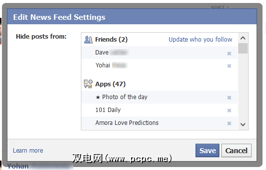 那么为什么要从新闻源中隐藏应用程序或个人?对于应用程序,这是显而易见的。目前,我的新闻提要中隐藏了47个应用程序,但我仍然偶尔收到关于一个朋友的浪费时间,令人眼花cor乱的帖子,该朋友刚刚在Whatchamacallit Blitz赢得了45304点的积分。对于我来说,Facebook是用于与我(通常)在意的人保持联系,因此类似这样的帖子通常会让人分心。