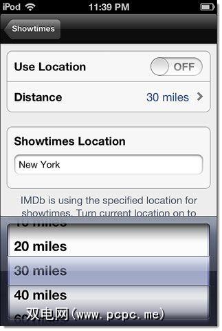 IMDb iOS应用程序最好的功能之一就是放映时间部分。它位于前方和中部,因此您可以方便地查看在雷区上骑小马车时正在玩的游戏。您可以允许该应用自动发现您的位置,也可以自己在特定距离内指定位置。
