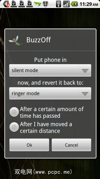 另一个有用的“ 请勿打扰"应用程序叫做“ Buzz Off"。这可能是最快,最容易使用的。这是您要将手机置于静音模式时打开的应用程序的类型,但它不仅可以指示将其保持静音状态的时间,还可以告诉它距离使其保持静音模式。很好吗?