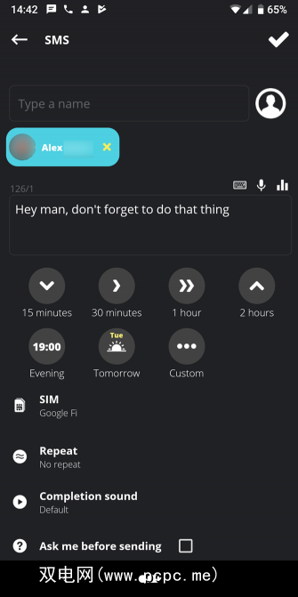 如果您想更深入一点,可以设置重复提醒或在发送前需要人工确认。使用双SIM卡电话的用户甚至可以选择发送短信的SIM卡。