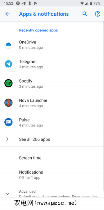 要针对任何应用进行调整,请访问设置>应用和通知>查看所有X个应用,然后点击要调整的应用。展开应用程序设置页面上的高级部分,然后点击电池字段。