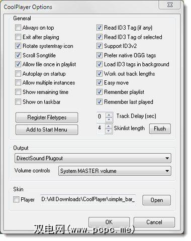 对我来说,一些必备品是– 加载ID3标签; 记住播放列表;和记住上次播放。您还可以选中 Scroll Songtitle 和 Rotate System Tray Icon 来使CoolPlayer保持播放状态,因为它是如此之小,并且某些皮肤(如simple_bar)使其实际上不可见!如果要将其设置为所有MP3文件的默认播放器,请单击注册文件类型。
