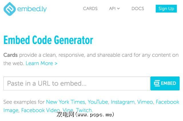 让您的第一个嵌入Embedly很荒谬。只需转到embed.ly/cards,然后将指向您要嵌入内容的链接粘贴到框中即可。一切都会起作用。试试吧!