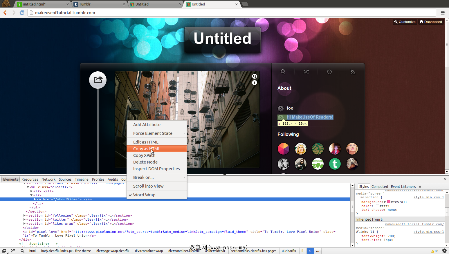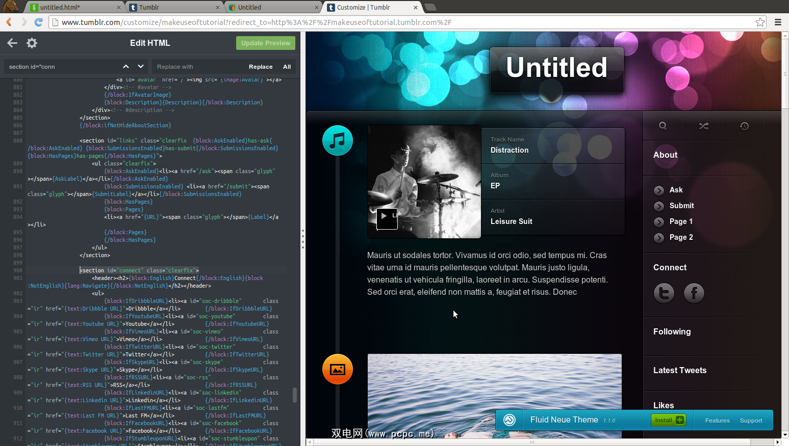 正如您在上一节末尾可能已经注意到的那样,我们的tumblr非常贫乏。我们应该添加它,但是很难确定您想要的tumblr是什么样子。如我们所见,自定义选项几乎是无限的。