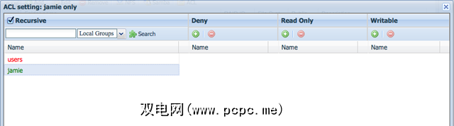 创建共享文件夹非常简单,但是限制对其的访问涉及到单击标记为ACL的小图标-再次,这不是面向初学者的。我什至不会在打开它时无法打开的对话框中开始。