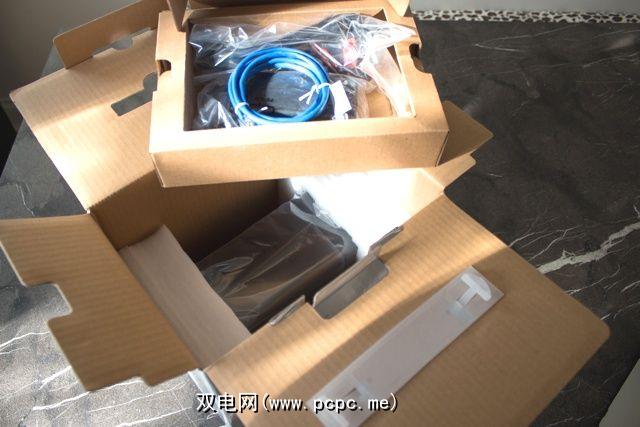 该单元非常实用整齐地包装,带有一个附件盒,用于容纳电缆,电源适配器和大量螺钉。在填充好的主机下面。