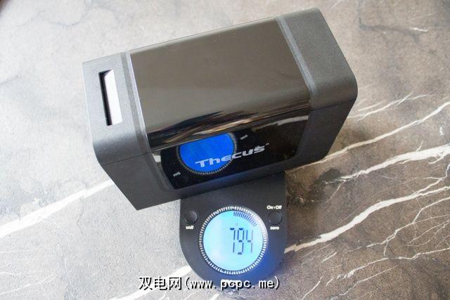 Thecus N2310的重量非常轻-不到800克(不带驱动器),这归功于其全塑料外壳。从设计角度来看,我实际上更喜欢高端白色和灰色Synology DSJ413j。但是,我不喜欢覆盖N2310顶部和侧面的有光泽的,喜欢指纹,吸油的塑料外壳。确实应该从所有东西中淘汰光滑的塑料。
