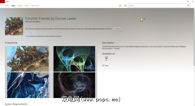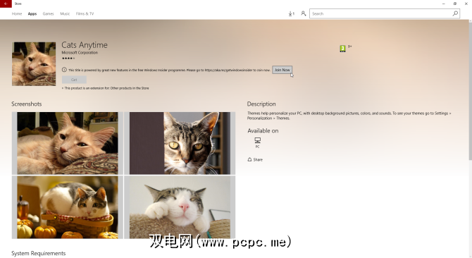 Windows 10 Home和Pro用户可以通过这些链接进入Windows每个列出的主题的商店页面。但是,您将不会下载。相反,您可以按照立即加入按钮加入Windows Insider程序(这至少仍未授予您访问权限,至少现在还没有)。