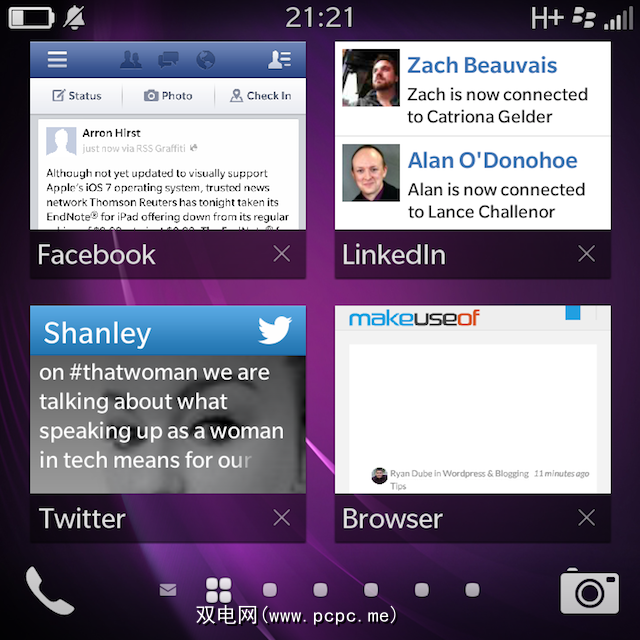 我一直是多任务处理的忠实拥护者黑莓10一段时间。您向上滑动,每个打开的程序都用一个漂亮的小方块表示。就是说,我经常发现自己希望这些正方形实际上显示出一些东西,就像Windows Phone 8上的Live Tiles一样。