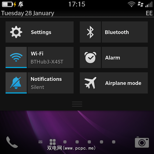 Blackberry 10使用手势在操作系统中导航。从主屏幕向下滑动可进入“快速设置"菜单。这使您可以轻松访问WiFi,语音通知,警报和系统设置。正如您可能期望的那样,随着系统的重大更新,此功能已经进行了大修。