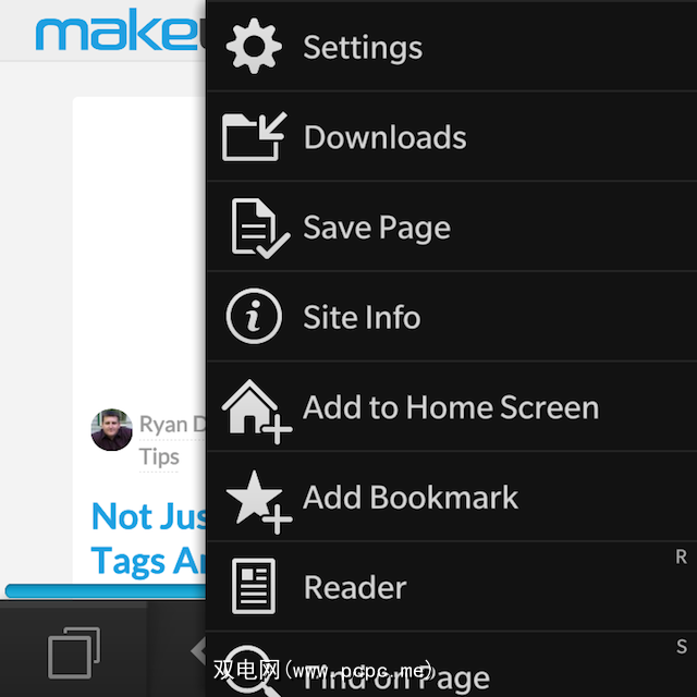 Blackberry 10.2.1可让您保存并存储网页以供以后查看。在浏览器中,点击“设置",然后选择“保存页面"。就是这样。