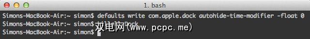 或者,您可以将 0 更改为其他值(以秒为单位),以使Dock以不同的速度显示。如果以后想还原这些设置,请运行以下命令: