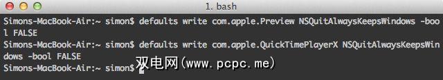 您可以通过将 Preview 换为来对QuickTime进行相同操作QuickTimePlayerX 。如果您想恢复这些更改并重新打开自动恢复功能,只需执行相同的命令,然后将 FALSE 更改为 TRUE 。