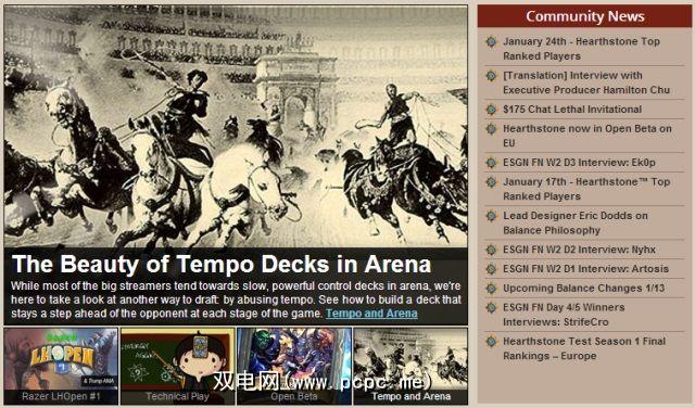 该站点提供新闻,指南,卡片清单,甲板建造建议,视频,屏幕截图库,论坛等。 2P的炉石传说中心具有真正独特的导航功能,该站点几乎所有来自网站各个部分的最新内容都显示在主页上。您可能更喜欢这种导航方式,而不是此列表中的其他网站。