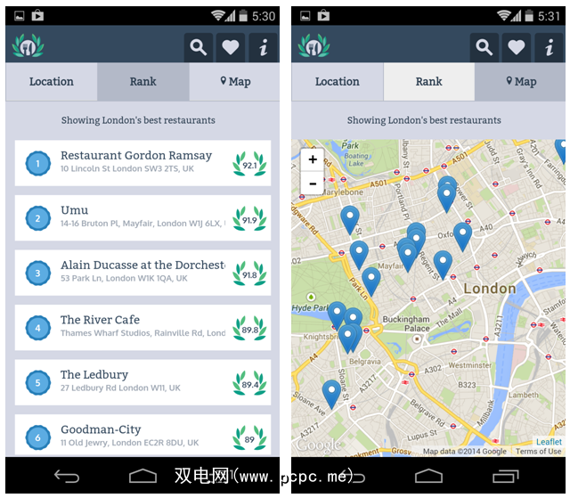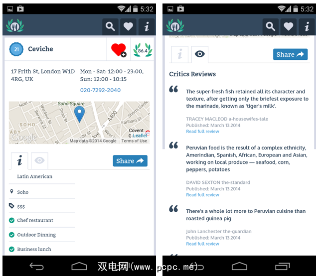 由于评分是根据专家点评得出的,并非每家餐厅都有,所以餐厅列表您会发现这里的限制比Yelp或TripAdvisor这类应用更有限。开发人员承诺,尽管会一直增加更多的餐馆。