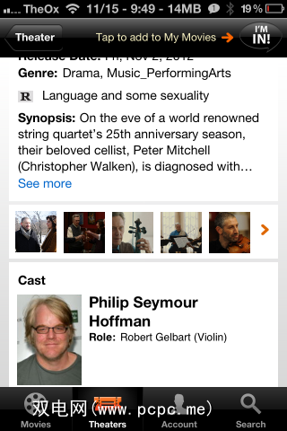 在底部屏幕右侧是搜索选项。如果您确切地知道要寻找的内容,那么这里就是您想要的地方。键入剧院,电影或演员,该应用程序将为您提供所需的确切信息。