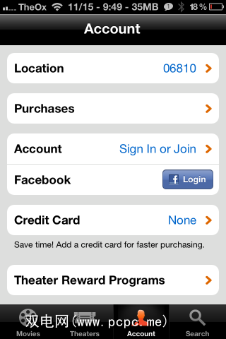 您还可以将Fandango与Facebook关联。值得庆幸的是,他们不会像其他许多应用一样强加给您。如果您想这样做,可以在帐户标签下找到,但是如果链接不适合您,只需忽略它,然后继续使用该应用即可。