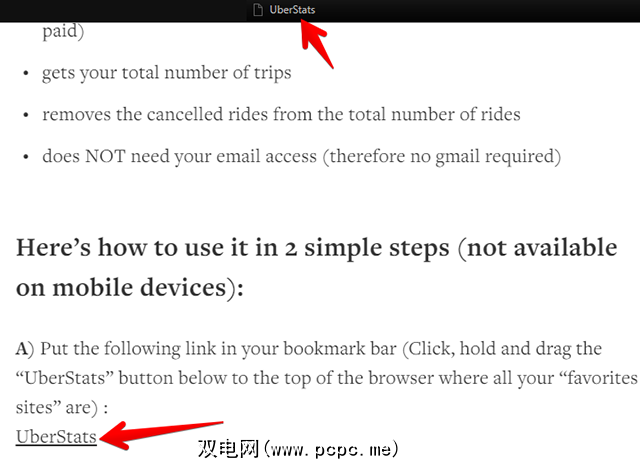 从此处打开Uber Trips页面,然后单击刚刚添加到书签的链接。将会弹出一个小窗口,告诉您大约需要40秒钟扫描页面,然后您才能看到结果!