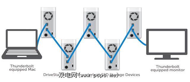 在此菊花链中,MacBook Pro和iMac将能够读取数据从所有硬盘驱动器和RAID,以及彼此交谈。太酷了吧?