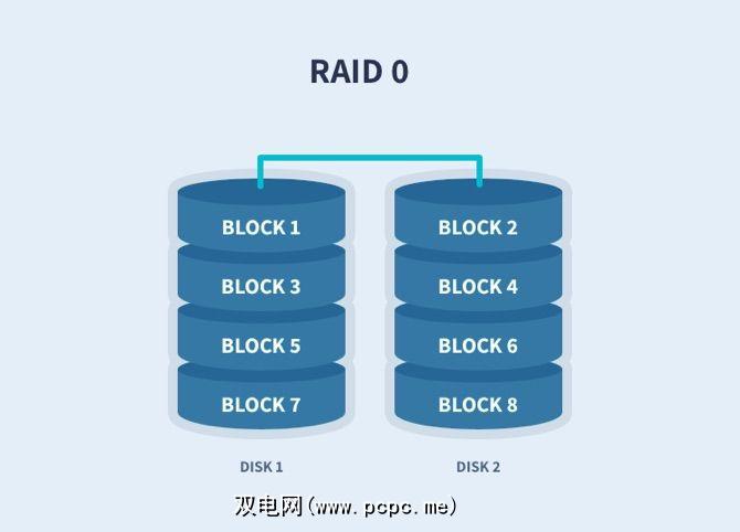 RAID 0使用阵列中的所有驱动器创建单个逻辑卷。由于系统可以将数据同时写入两个卷,因此可以提高写入速度。 RAID使用称为“条带化"的系统将数据按顺序存储在单独的卷上。不利之处在于,如果一个硬盘驱动器发生故障,则整个阵列也会发生故障。