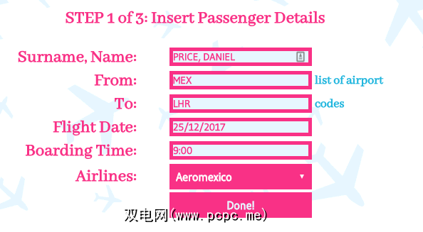 在第一个屏幕上,您可以输入您的乘客详细信息和航班信息。