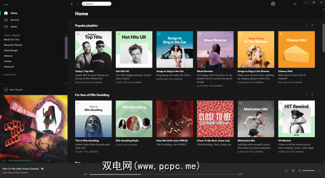 Tidal和Spotify具有非常相似的界面。快速浏览一下两者,您甚至可能不会注意到其中的区别。在桌面上,您可以在左侧导航,在主窗格中选择内容,然后使用底部的音频控件。