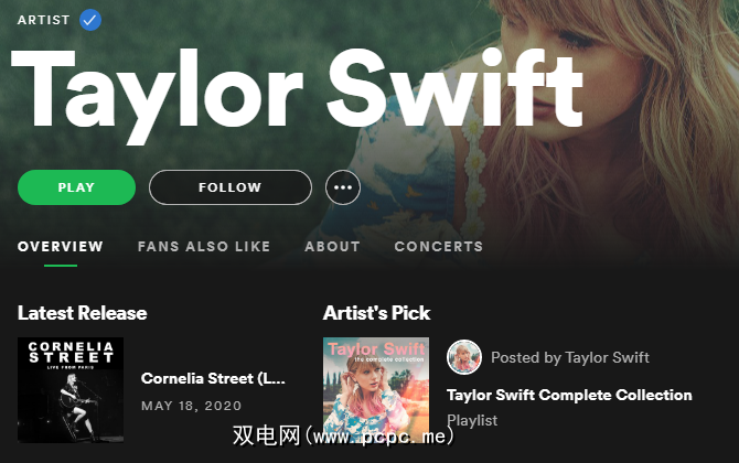 在艺术家页面上,您可以查看专辑,单曲和合辑以及类似的艺术家