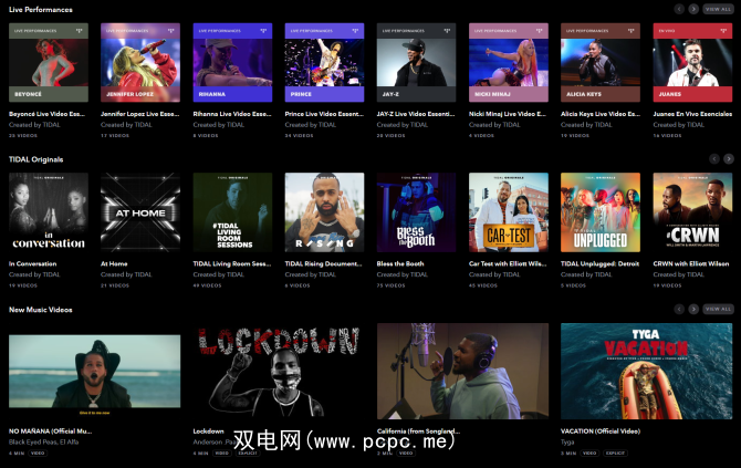 Tidal拥有超过240,000个可用的视频。其中许多是音乐视频,但还不止这些。有独家的现场表演,视觉专辑,纪录片和访谈。潮汐(Tidal)也有非常少量的播客,但您可以将其视为小礼物,而不是您专门注册该服务的任何东西。