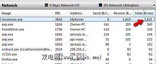 接下来是RealVNC。这实际上是我使用过的第一个VNC客户端,它仍然是我仍然使用的VNC服务器应用程序。运行RealVNC客户端,资源监控器显示出几乎相同的性能,仅稍好一点。另一面,我注意到RealVNC消耗的网络带宽仅比UltraVNC高一点,为1,887 B / sec,但并不高很多。由于带宽可能会不时地波动-至少轻松达到200 B / sec-因此,出于所有意图和目的,这两个应用在每种方式上的性能几乎相同。