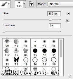 首先选择一个较大的尺寸边缘柔软的刷子。在我的高像素照片中,我选择了一个硬度为0的画笔大小约为400px。