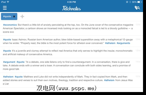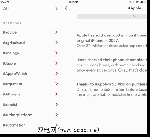 Fetchnotes中的#标签面板被隐藏起来,需要再次轻按才能拉出它们,而使用iOS版本的“字母空间",您只需向右滑动即可访问所有主题标签。