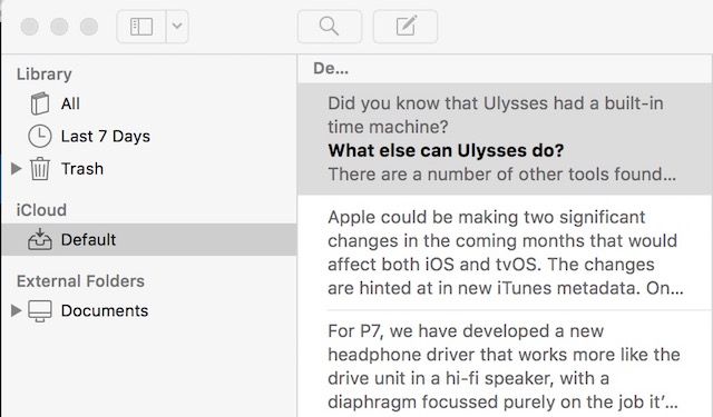 Ulysses还提供了简单的同步。在这种情况下,它使用Apple的iCloud系统,使您可以在一台设备上开始写入,而在另一台设备上完成写入。您无需为Office 365订阅付费,只需确保在iCloud上有一些文本文件的备用空间。